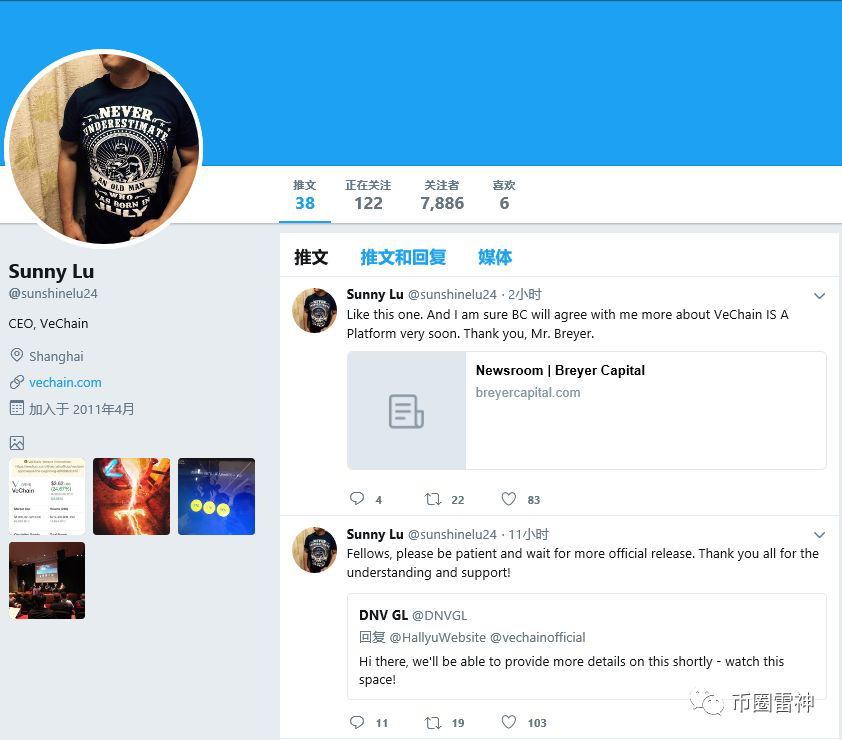 Sunny今天下午在推特上转发了布雷耶资本的官网新闻,他说道:“我非常确信,布雷耶资本马上(Very Soon)就会同意我的观点:唯链是一个平台。”注意Sunny这里用的是大写的IS进行强调。这是因为布雷耶资本官网的这篇新闻,完全是链接布雷耶在15天前Quora上的回答,而媒体在之前的解读中曾经提过: