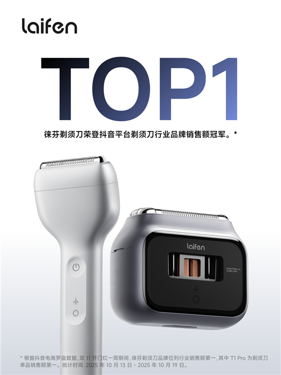 新品徕芬直线往复式剃须刀T1 Pro和P3 Pro成绩斐然,双11开门红期间登顶抖音和天猫平台剃须刀单品销售额榜首,在京东平台上也击败松下、博朗等国际品牌,斩获599~1299元价位段往复式剃须刀销售额冠军。