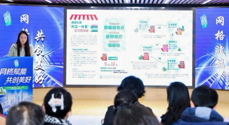 近日,浦锦街道党群服务中心内,一场名为“网格赋能,共创美好”的专题活动拉开序幕,来自闵行区委社会工作部主要领导、闵行市场局、闵行政府服务中心相关科室负责人、浦锦街道主要领导、分管领导和相关职能部门负责人、高校学者、综合网格和园区党组织负责人、企业商户代表以及社区居民等百余人齐聚一堂,共同见证上海基层治理一次具有“首创”意义的突破性实践。活动全景式地展现了浦锦街道如何将“网格”这一治理单元,系统性地重塑为“开店一件事”服务市场主体的前沿阵地,标志着政务服务从被动审批的“窗口”全面迈向主动上门的“门口”。