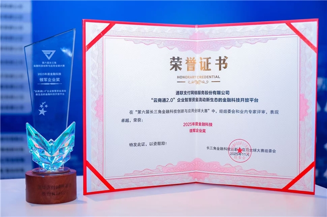 11月21日,“2025中国金融科技创新与应用外滩高峰论坛”暨第六届长三角金融科技创新与应用全球大赛总决赛在上海盛大举行。大赛上,通联支付“云商通2.0—企业智慧资金流动新生态的金融科技开放平台”(简称“云商通2.0”),凭借深厚的技术实力、全场景产品服务能力、丰富的行业定制方案、开放共创的产业生态以及不断显现的服务成效等综合优势闪耀总决赛,成功获得“金融科技·领军企业奖”。