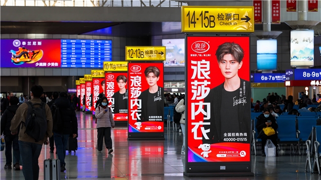 浪莎保暖内衣与“中国高铁传媒第一股”兆讯传媒携手,打造覆盖多城市、多站台的“2026 元旦暖程”品牌传播矩阵。兆讯传媒已构建覆盖全国 30 个省份的高铁数字媒体网络,年触达客流量超 20 亿人次,精准对接 2026 年元旦超 1200 万人次的铁路出行高峰。
