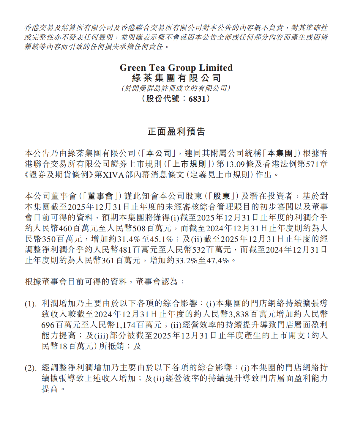 在行业整体预期改善的暖风之中,休闲中式餐饮领军者绿茶集团率先交出了一份亮眼的成绩单。2月24日,公司发布正面盈利预告,引发市场广泛关注。
