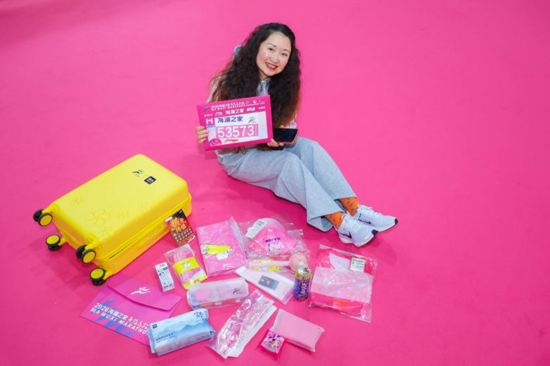 为了迎接这场奔跑盛宴,海澜之家在赛前就为跑者们送上一份沉甸甸的“能量”。领物现场特别打造成“登机口”设计,寓意一飞冲天与新的启航。而当跑者打开海澜之家能量包时,惊喜溢于言表——小奶狗T恤、全顶遮阳帽、防晒冰袖、加厚毛巾底袜、亲肤绵柔巾、艾草按摩捶等实用物品,从赛道防护到赛后恢复一应俱全。20寸黄色定制拉杆箱可将所有物资轻松收纳,让跑者在报到时就感受到“拎不完的幸福”。