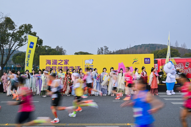 从衣架造型的公里提示牌,到精心设置的四大主题加油站,海澜之家把陪伴写在了赛道的每一处细节里!「HLA POW澜跑」小奶狗人偶和身穿汉服的小姐姐们,用热情呐喊为跑者注入能量。古风与活力的碰撞,让激烈的竞速多了一份人文温度。而在终点完赛区,海澜之家早已备好一双双柔软舒适的拖鞋,让跑者们在冲线后的第一时间解放疲惫的双脚。这一细节延续三年,被跑友们誉为“最贴心的赛后仪式感”。