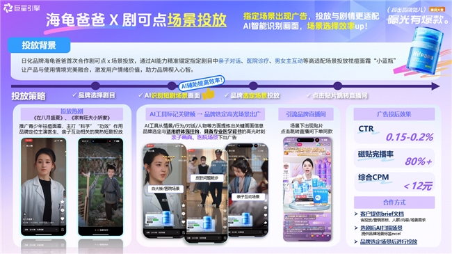 「AI植入」通过AI智能识别短剧画面,无缝插入/ 替换品牌产品,突破拍摄时空限制实现高效补拍,以“剧爆则投”模式降低80%以上合作成本与风险,场景化软植入带动品牌认知度提升25% 以上;