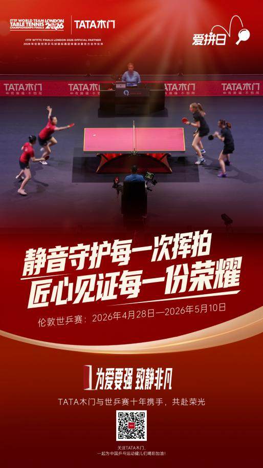 当2026伦敦世乒赛团体赛的战鼓即将敲响,一场跨越山海的奔赴,正书写着中国家居品牌的全球新篇。2026年4月28日,伦敦世界乒乓球锦标赛团体赛正式开赛。TATA木门伦敦观赛团也即将启程,奔赴英国伦敦亲临赛事现场,以沉浸式观赛体验见证国球巅峰对决,向世界展现中国家居品牌的硬核实力与全球格局。作为2026爱拼日核心动作,TATA木门以多元视角传递“为爱要强·致静非凡”的品牌内核,让中国静音木门智造力量闪耀国际体育舞台。