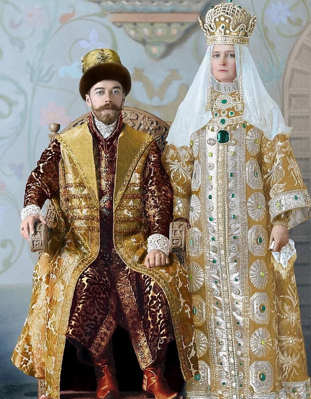 上了色的尼古拉斯二世和亚历山德拉•费奥多罗芙娜在1903年舞会上的肖像照