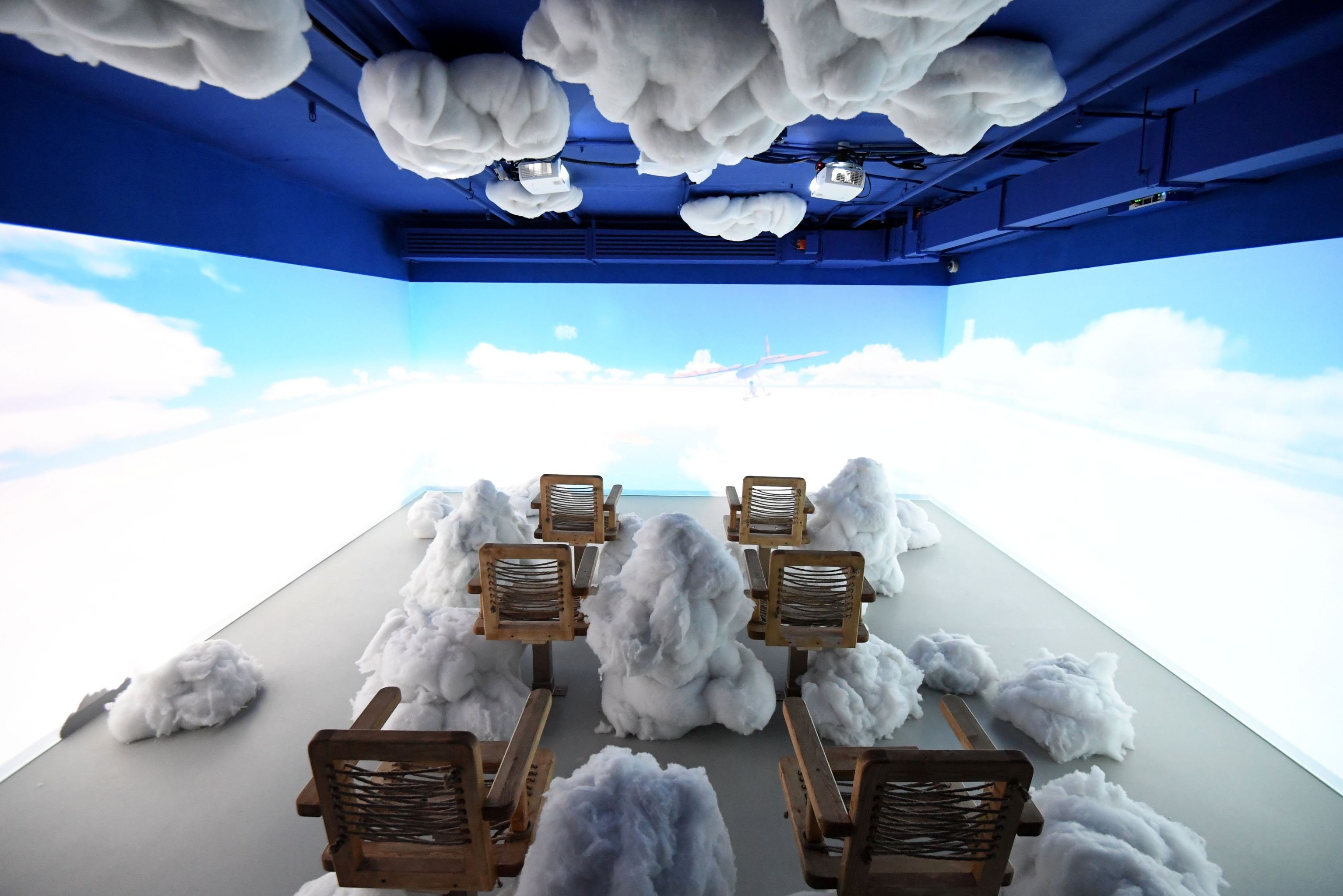 在娱乐中心,每一个展厅都将我们带入一个动画世界。参观者可以钻到“小熊维尼”的兔子洞里,也可以在“雾中的刺猬”的森林里寻找道路。目前,所有的指示及说明都只有俄文。将来可能制作英文版。本次行程的最后一站是飞行。这个大厅里满布着白色的云朵,云朵环绕着座椅,沿墙面漂流,这一切都让人进入虚拟的飞行状态。戴上头盔以后,就立即会有离开地面的感觉,仿佛乘着飞艇遨游在奇幻世界,那里有美丽的热带岛屿和海洋。海浪似乎就在脚下—只有头盔的重量告诉你这一切都是虚幻。