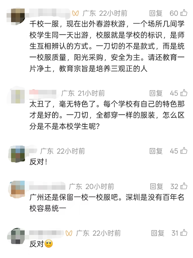 近期引发热议的广州校服统一计划,更凸显了“少数决策与多数意愿”的矛盾。近日,据媒体报道,广州市正制定相关管理办法,拟在全市推行中小学生统一校服,《广州市中小学校服管理办法(修订)》预计2026年3月正式发布,此前启动的第四届中小学校服设计大赛被外界解读为“统一校服铺路”。但一份针对广州家长、师生的线上调查显示,62.08%的受访者明确反对统一校服,认为这会抹杀百年名校的校园文化传承,剥夺学生与家长的选择权。这场政策动向与多数民意的明显背离,再次引发公众对“谁来主导校服决策”的深层思考。