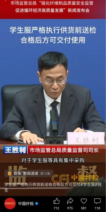 2026年1月13日,市场监管总局召开新闻发布会,正式出台新修订的《纤维制品质量监督管理办法》,明确将学生服等4类产品纳入重点监管范畴。市场监管总局质量监督司司长王胜利强调,对于学生服等具有集中采购、统一使用的产品,必须严格执行供货前送检制度,确保每一批次的产品经检验合格后方可交付使用。