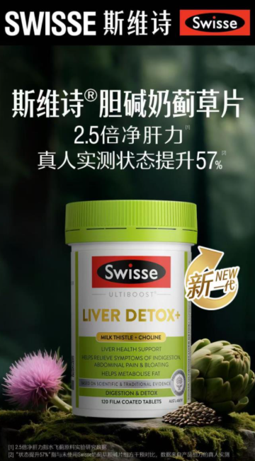 王牌护肝单品——Swisse斯维诗胆碱奶蓟草片,从原料到生产全链路贯彻“三真”原则。产品创新添加了自研组方,相关研究成果刊登于SCI期刊,还通过了1024项检测严控质量,结合动物实验与真人实测,多维度为产品品质夯实基础。