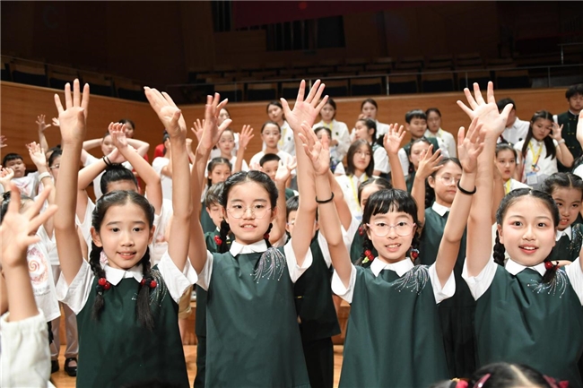 音乐会舞台中央,刚从澳大利亚载誉归来的合唱团国际班团员们,手持团扇、妆容清雅,一曲获奖作品《舟中晓望》婉转响起。就在不久前的第六届悉尼国际文化节上,孩子们以《清平乐・村居》的宋词意蕴、《ComeToTheMusic》的融合多声部合唱技巧,一举斩获童声组、混声组两项金奖——这是合唱团十岁生日收到的珍贵“礼物”。
