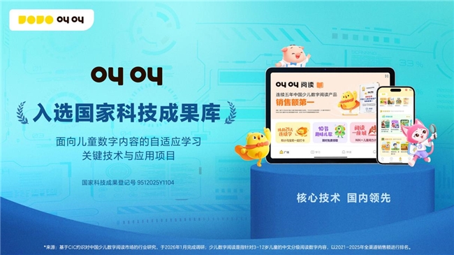 叫叫自主研发的“面向儿童数字内容的自适应学习关键技术与应用项目”,还成功入选国家科技成果库。这一成果标志着其在儿童数字阅读科技领域的技术创新能力获得国家级权威认可。