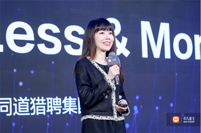 同道猎聘集团总裁宋月婷在《AI奇点,Less & More》主题演讲中指出,AI正把人才与组织推向一个“奇点时刻”:首先,在用工结构上呈现出明显的“Less Full-Time, More Part-Time”趋势。中国企业正加速采用零工与外包等灵活用工方式,以应对降本增效与业务弹性需求的双重挑战。