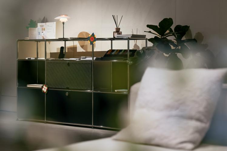 「爱在其中」源于一个朴素的观察:那些经过挑选、经过使用、经过时间的物件,慢慢成为生活本身的一部分。展览以此为出发点,将花卉引入 USM 标志性的模块化系统,在精准的工业语言与自然生长的有机形态之间建立对话,探讨秩序与柔软、恒久与当下之间的关系。