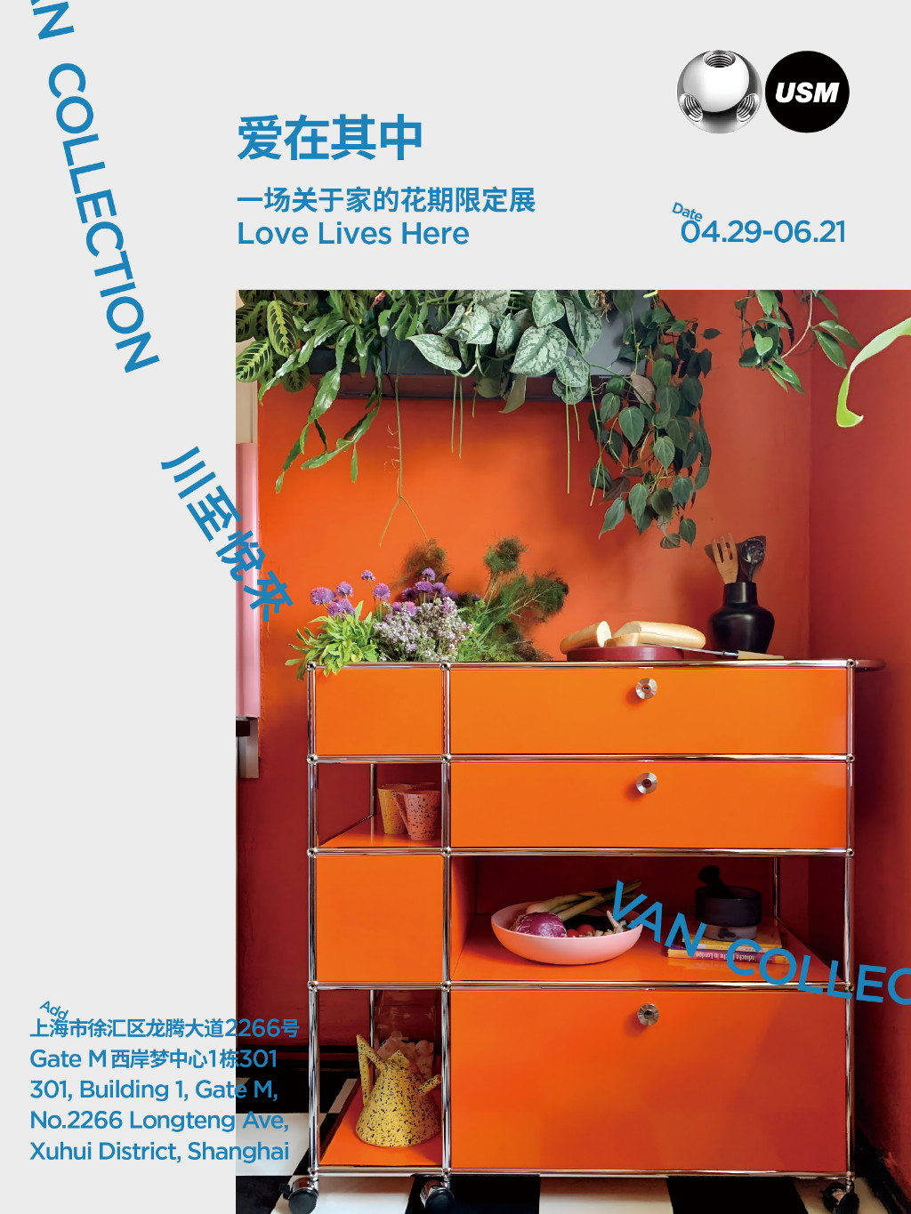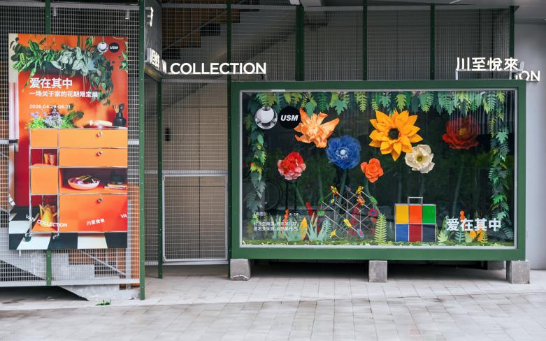 2026年4月28日,瑞士模块化家具品牌 USM 携手川至悦来家居,于上海西岸梦中心正式开幕「爱在其中」花期限定展,展期持续至6月21日,共计55天。