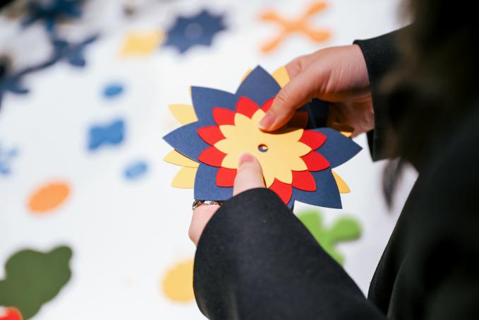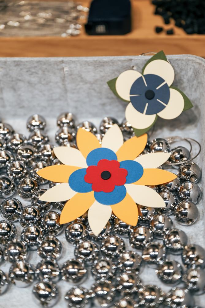 展览同期推出限定互动体验——以USM球形连接器为载体,搭配几何纸艺花卉,访客可自主组合完成专属挂件,将展览概念延伸至日常携带场景。