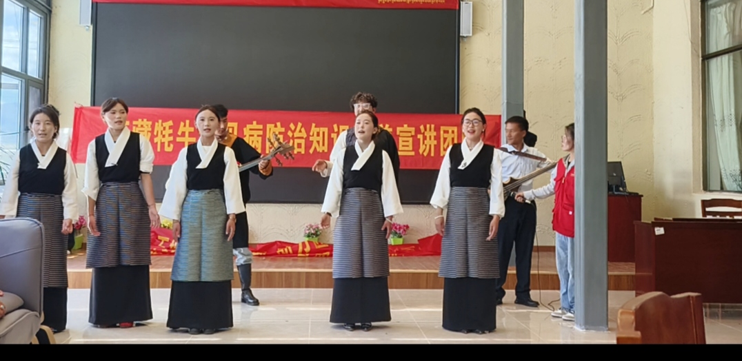本次活动创新融合民族文化传播元素,让科普宣传更具温度与感染力。学院扎木念社团的师生们带来了极具藏族特色的扎木念弹唱与民族舞蹈,欢快的旋律、优美的舞姿展现了藏族文化的独特魅力,赢得现场牧民群众的阵阵掌声,将活动氛围推向高潮。