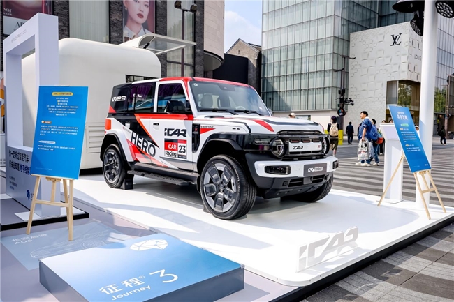另一款备受瞩目的车型iCAR超级V23,则以其“方盒子”复古造型与高性价比智驾配置,成为“年轻人第一辆车”的热门选择。该车搭载基于地平线征程芯片的猎鹰500智驾系统,集成ACC、自动泊车、高速NOA等23项丰富辅助驾驶功能,实现“入门即高配”的智驾体验。凭借极具个性的潮流涂装,iCAR V23在现场吸睛无数,引来观众频频驻足打卡,将其独特的越野风格与实用功能展现得淋漓尽致。