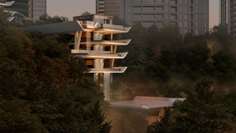 作为重庆湾百万方综合体的首发之作,顶级豪宅组团SKY ONE堪称整个项目的“皇冠明珠”。它的设计,深刻回应了“重庆辨识度”这一城市命题。